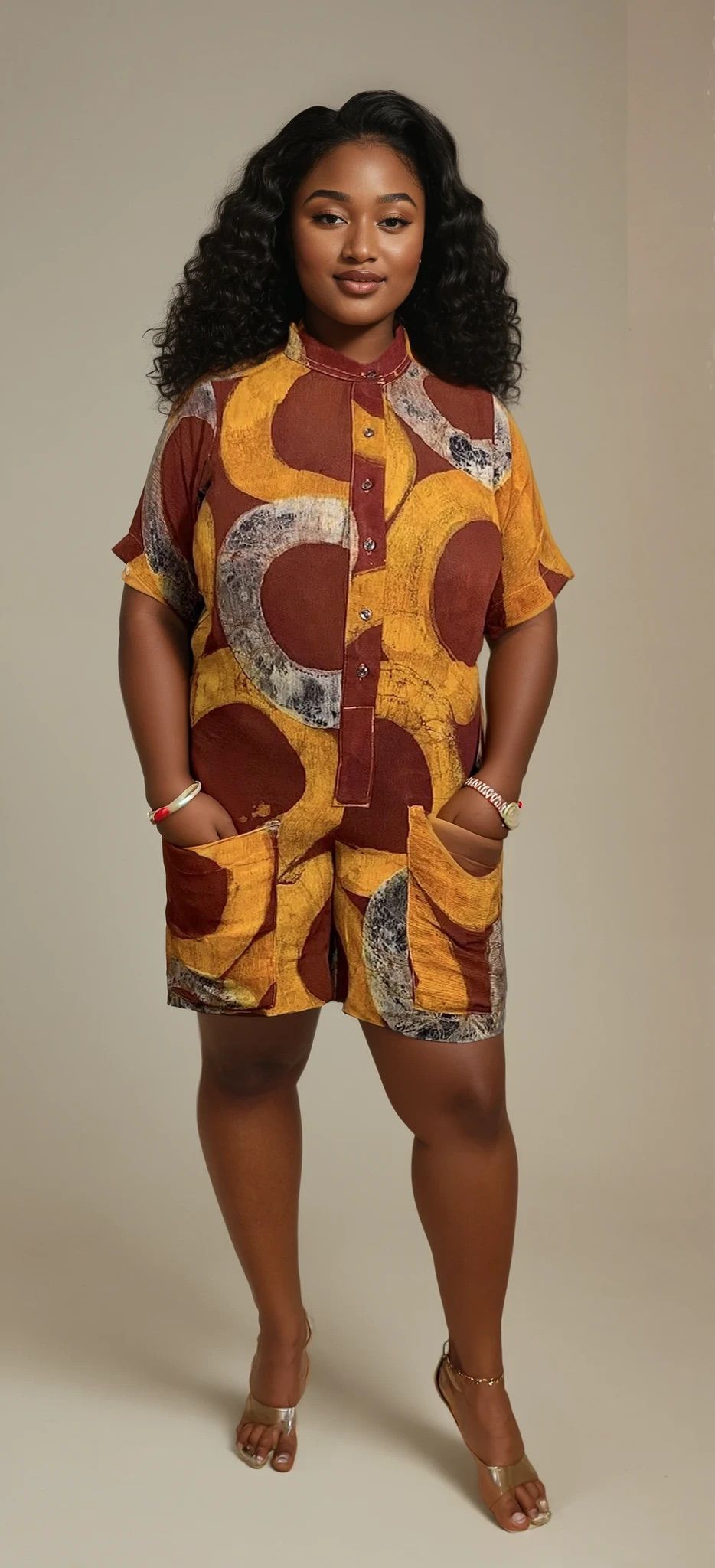 Introducing the Kuku Jumpsuit  — a stunning Adire jumpsuit that captures the essence of bold femininity and effortless grace. Designed with a flattering fit and all-day comfort in mind, this piece is perfect for the modern woman who embraces her roots while turning heads. Whether you’re at a casual outing or a cultural event, the short Jumpsuit ensures you show up looking unforgettable.