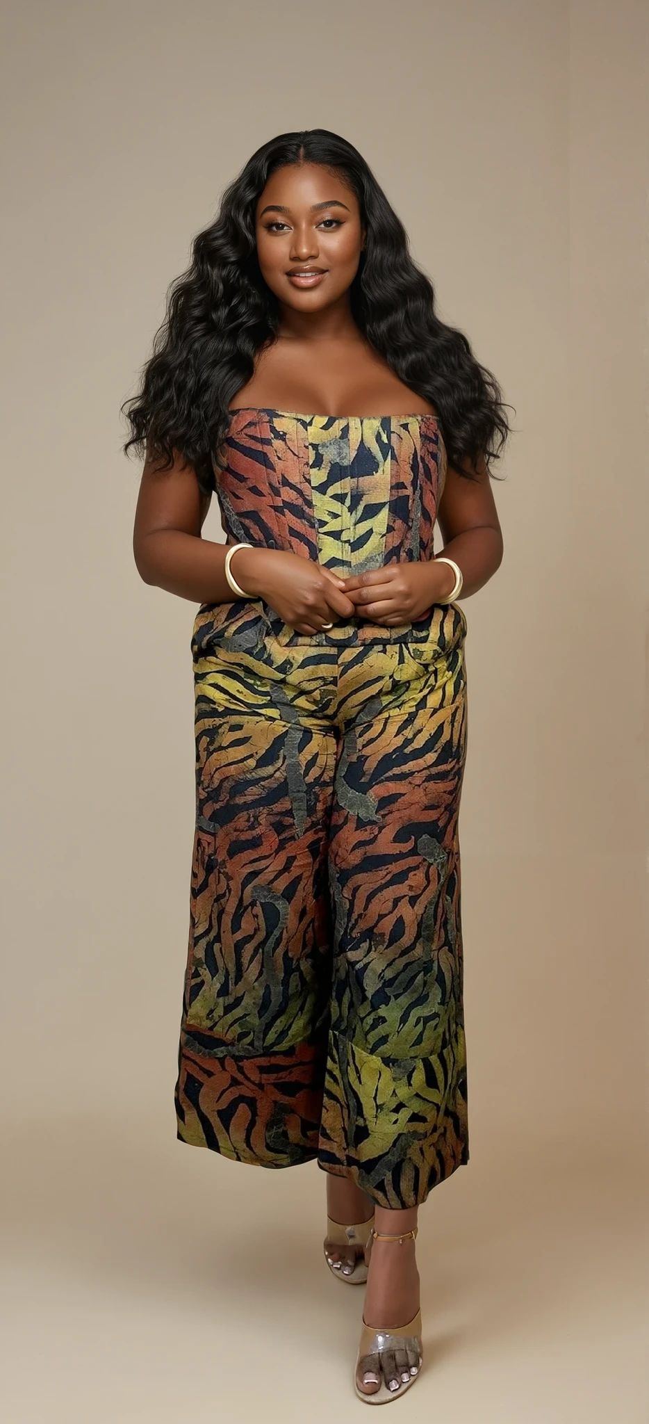 Step into bold elegance with the Valla Corset — a two-piece Adire set made for the woman who owns her presence. The structured corset top gives you a snatched, confident silhouette, while the matching tailored pants bring sleek comfort and undeniable style.